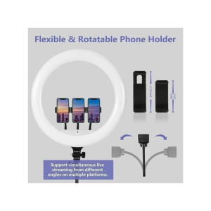 · Flexible & Rotatable Phone Holder - ring light comes with 3 hot shoe ports that allow you mount 3 phones, and 2 USB charging ports for your smart phone charging while livestream. It’s compatible with most smart phones with or without a case.