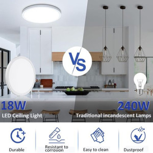 High CRI & Long Lifespan: 18W round ceiling lighting emits 1400 lumens brightness with more than 80+ CRI (color rendering index), which gives you an extraordinarily comfortable bright experience and vivid lighting effect in the dark place and enjoy beautiful light and natural colors. Under normal usage of 8 hours per day, lifespan could endure more than 3 years.