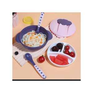 2 Pieces Baby Feeding Plates with Cover + Divider + Feeding Spoon + Feeding Fork