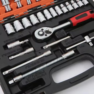 Shell color: Black Shell size: 240*125*45mm Main material: Carbon steel Quantity: 46 pieces set Packing list of 46pcs: Hxagonal flower-shaped sleeves: T10/T15/T20/T25/T30/T40 Flat-head hxagonal sockets: H3/H4/H5/H6/H7/H8 Vertical: S4/S5.5/S7 Frequency divider: PH1/PH2/PH3 Star rating: PZ1/PZ2/PZ3 13 * 1/4 "" hxagon socket, 4-4.5-5-5.5 - the 6-7-8-9-10-11-9-10-11 mm 1*1/4 "universal joint 1*1/4 "elastic connecting rod 2*1/4 "connecting rod (50mm, 100mm) 3* L-shaped hxagonal wrench (1.5-2-2.5mm) 1* 1/4-inch slider 1*1/4 "interface small square rod 1*1/4 "quick-release ratchet wrench 1 storage box Packing list of 53 items