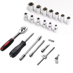 (11) 1/4 "DR. Ratchet Handele--------1PC (12) Black shell --------1PC Characteristics: Durable material: Made of carbon steel, it is durable, non-toxic and rust-proof. 2. Portability: All tools are packed in a sturdy plastic box, which is convenient for storage and transportation, keeping the tools neatly organized and making it easy for you to place the tools you need. 3. Wrench handle: Equipped with an anti-slip handle, it is comfortable to hold and ergonomically designed for use. 4. Wide range of applications: Suitable for most small maintenance and basic DIY projects in homes, garages and workshops. It is applicable to maintenance workers, construction workers, mechanics, etc. Note: Manual measurement. Please allow an error of 1 to 2mm. Thank you. 2. Due to the differences among various displays, the pictures may not reflect the actual color of the items. Please allow a little color