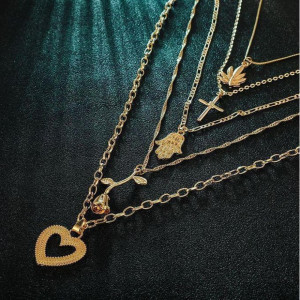 This necklace set is a perfect blend of fashion and individuality. Composed of multiple necklaces, it exudes unique charm.