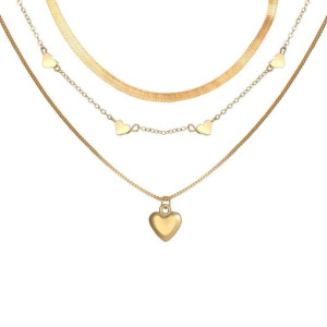 This multi-layer heart necklace centers on gentle heart motifs, combining 3 distinct chains for a stylish look:
